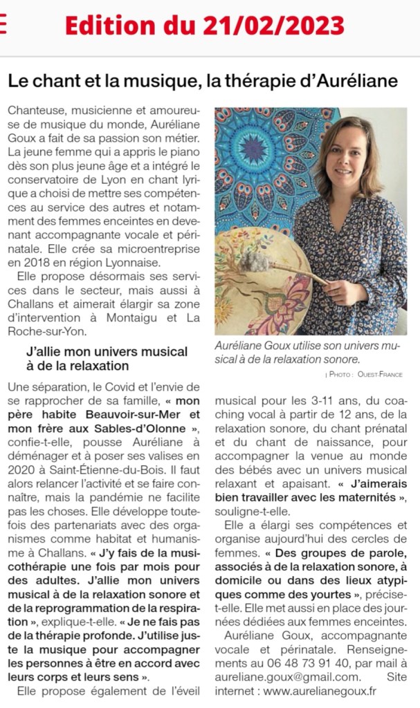 J’y suis interviewée dans l’émission « Parcours de vie » par Pascale Levrier sur le thème de la musicothérapie que je pratique.
